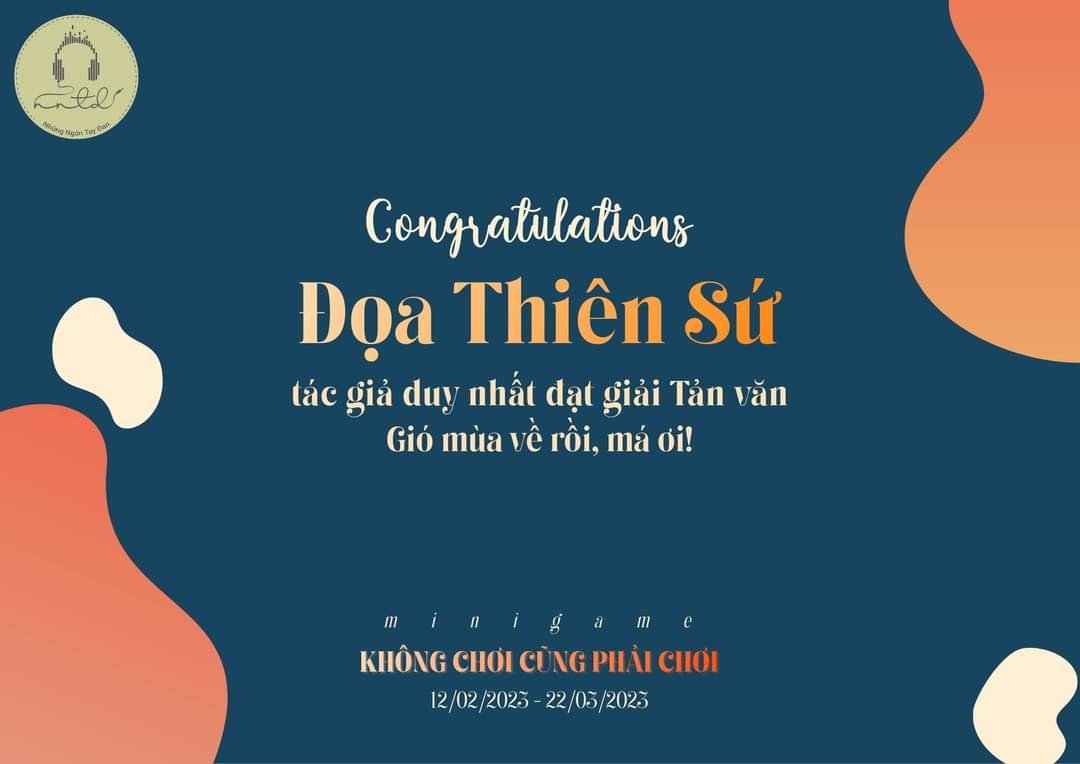 🥳Chúc mừng Đọa Thiên Sứ và chúng ta tiếp tục chờ đón Thơ và Truyện ngắn chạm đích nhé.