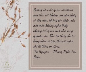 Dường như đã quen với tất cả mọi thứ, tôi không còn cảm thấy cô độc nữa, không còn thân xác mệt mỏi, không nghe thấy những tiếng nói cười chê xung quanh nữa. Thứ tôi thấy chỉ là bóng đêm vô tận, thứ tôi nghe chỉ là tiếng im lặng.