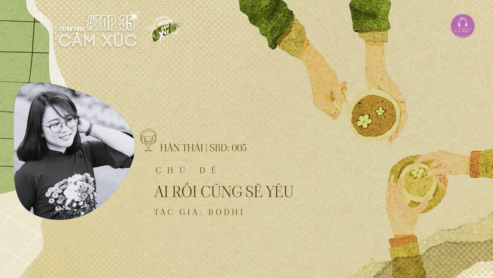 "Chào bạn đến với phần dự thi ĐAN TAY CÙNG CẢM XÚC vòng chung kết 1 - được tổ chức bởi nhóm Những Ngón Tay Đan, phát trên kênh Youtube Những Ngón Tay Đan. Mình là Hân Thái - Số báo danh 05 dự thi với chủ đề AI RỒI CŨNG SẼ YÊU"